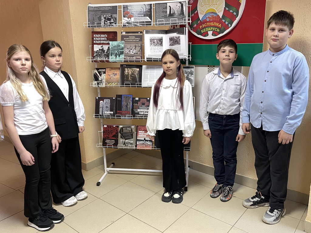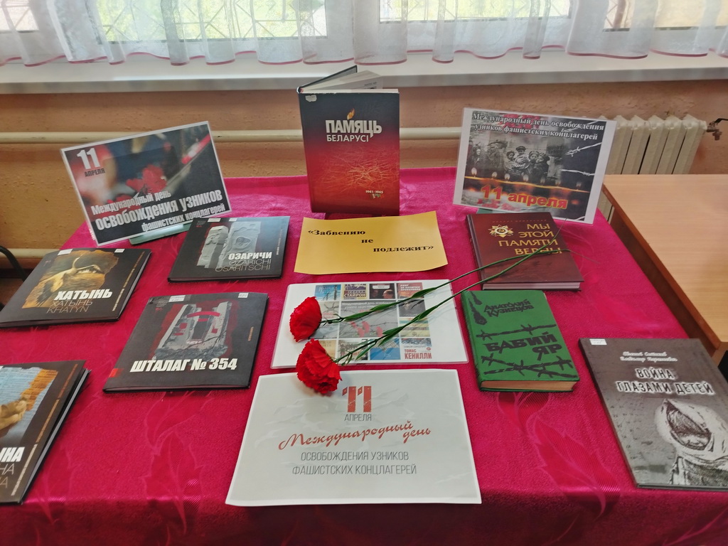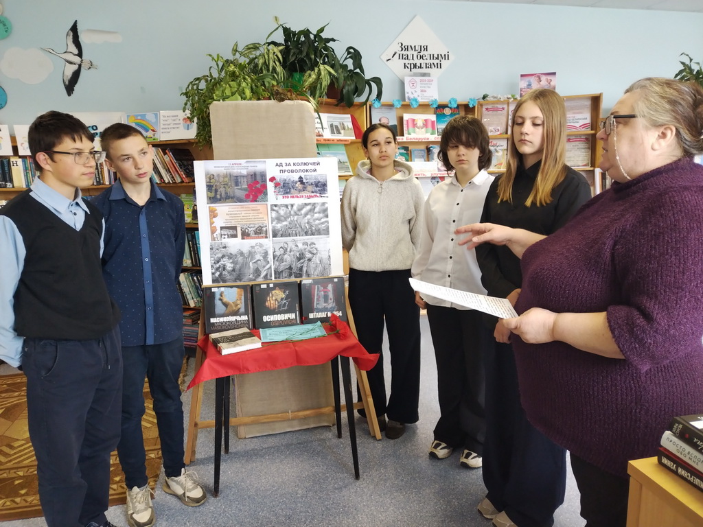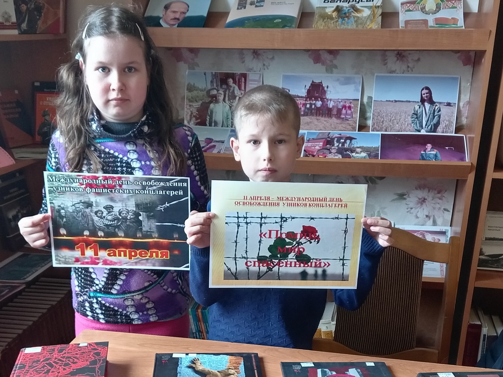 В центральной библиотеке прошел урок памяти «Надо помнить». Во вступительном слове библиотекарь рассказала, почему Международный день освобождения узников фашистских концлагерей отмечается именно 11 апреля. Ребята узнали о концлагерях, созданных фашистами в разных странах, таких как Дахау, Равенсбрюк, Бухенвальд, Освенцим, Саласпилс, об ужасах, которые переживали узники концлагерей, ежедневно испытывая голод, подвергаясь истязаниям, преступным медицинским экспериментам, погибая в ходе изнурительных работ и подвергаясь жестоким пыткам. Ребята посмотрели видеофильмы «Лагерь смерти Тростенец», а также познакомились с книгами о геноциде белорусского народа.
