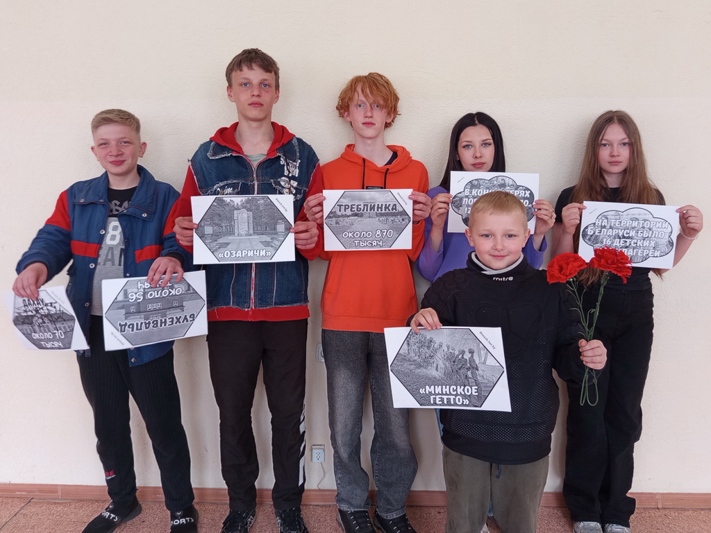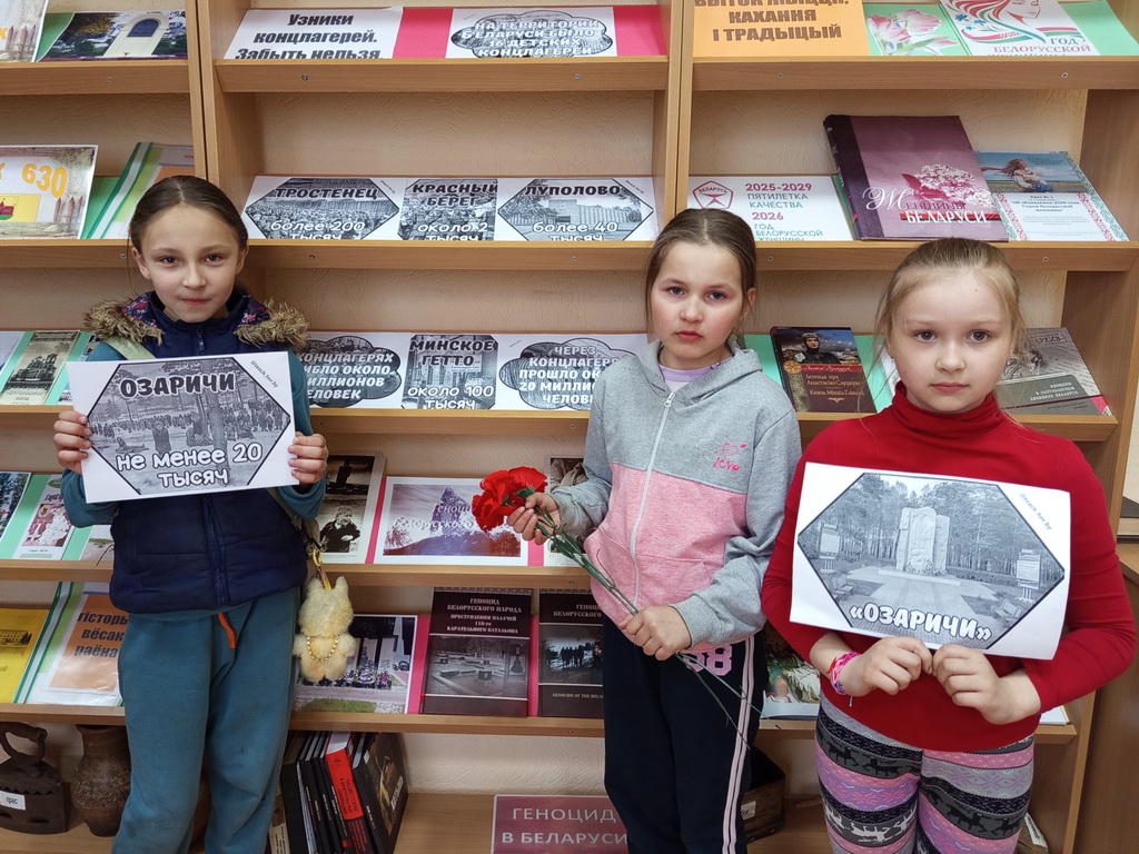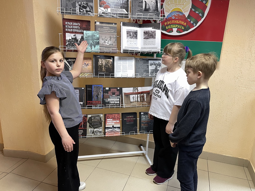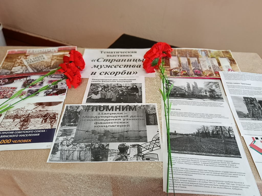 В центральной библиотеке прошел урок памяти «Надо помнить». Во вступительном слове библиотекарь рассказала, почему Международный день освобождения узников фашистских концлагерей отмечается именно 11 апреля. Ребята узнали о концлагерях, созданных фашистами в разных странах, таких как Дахау, Равенсбрюк, Бухенвальд, Освенцим, Саласпилс, об ужасах, которые переживали узники концлагерей, ежедневно испытывая голод, подвергаясь истязаниям, преступным медицинским экспериментам, погибая в ходе изнурительных работ и подвергаясь жестоким пыткам. Ребята посмотрели видеофильмы «Лагерь смерти Тростенец», а также познакомились с книгами о геноциде белорусского народа.