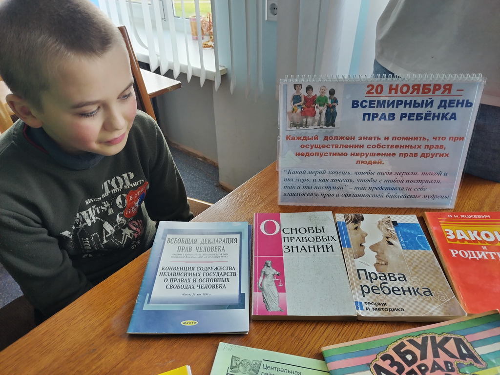 Беседа «Я люблю страну, где есть право на имя и на семью» прошла в Катковской сельской библиотеке в преддверии Всемирного дня прав ребёнка. Участники узнали, почему 20 ноября отмечается как Всемирный день ребенка. Библиотекарь рассказала детям об истории праздника, познакомила с основными правовыми документами: Конвенцией о правах ребенка и Декларацией прав ребенка. Ребята получили знания о правах человека, о ценности человеческой жизни, о навыках правильного поведения в школе и дома, в общественных местах и на улице. В библиотеке подготовлена книжная выставка – «20 ноября – Всемирный день прав ребёнка». На выставке представлены книги, рассказывающие об истории календарной даты 20 ноября, об основных правах и обязанностях детей, и, наконец, книги, которые повествуют о том, какими законодательными документами регулируются права ребенка в Республике Беларусь.