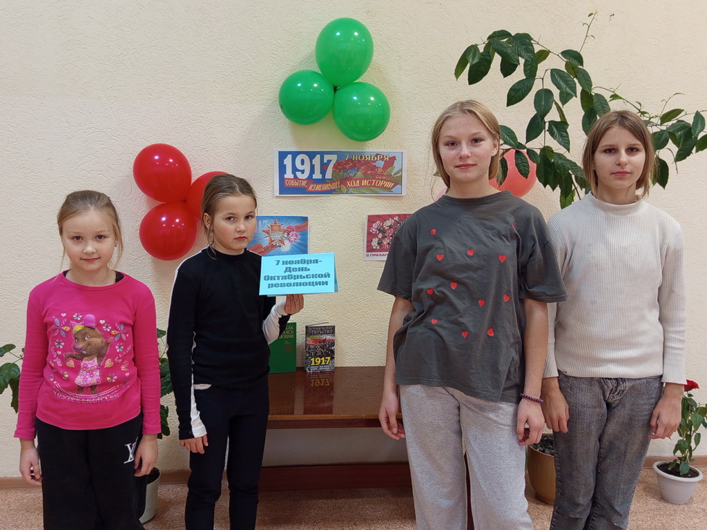 День Октябрьской революции установлен в 1998 году Указом Президента № 157 «О государственных праздниках, праздничных днях и памятных датах в Республике Беларусь». В рамках данного праздника библиотекарем Заволочицкой сельской библиотеки оформлена книжная выставка, которую посетили учащиеся школы и познакомились с художественными изданиями, в которых отобразились события Октября 1917 года.