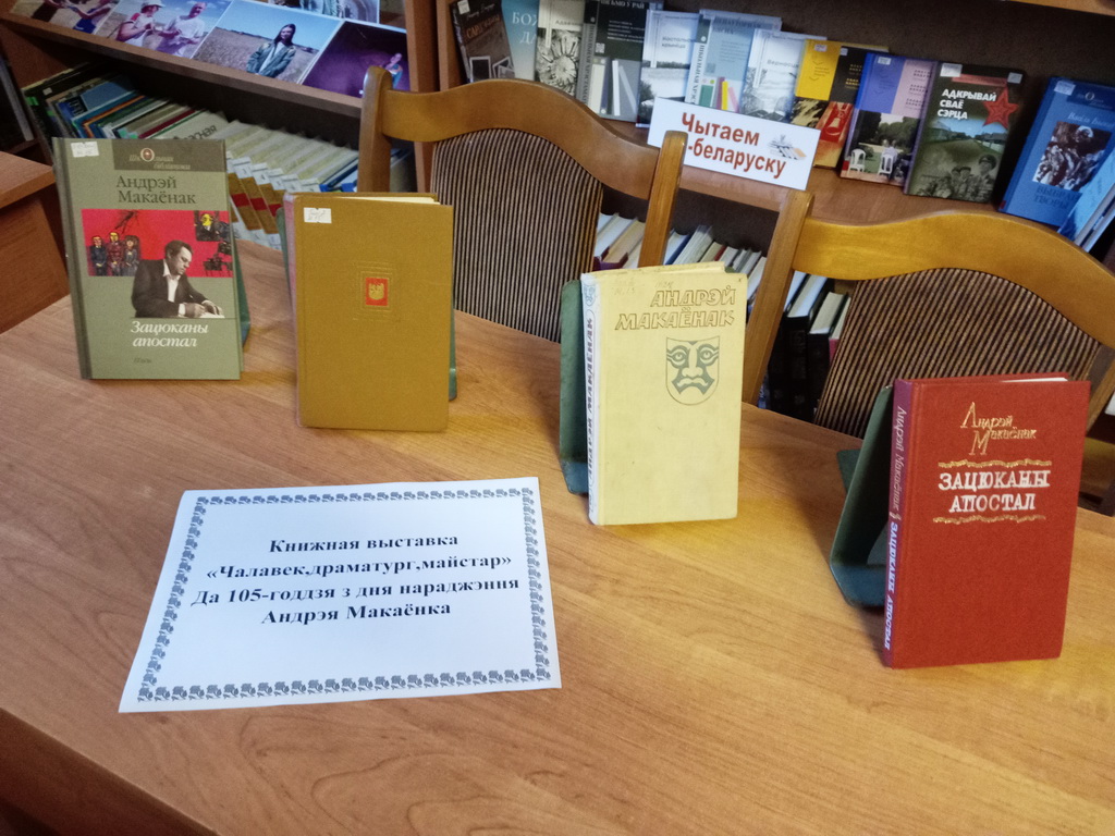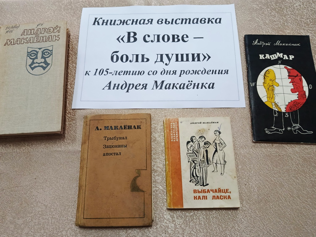 К 105-летию со дня рождения Андрея Макаёнка, белорусского писателя, драматурга, сценариста, в Бабировской сельской библиотеке-клубе оформлена книжная выставка-просмотр «В слове – боль души». Любовь писателя к жизни, решительность, иногда даже риск, помогали ему в самых сложных жизненных ситуациях. Им созданы не только сатирические комедии, но и трагикомедии («Трыбунал», «Зацюканы апостал»), сценарии фильмов, а также киноповесть «Твой хлеб».