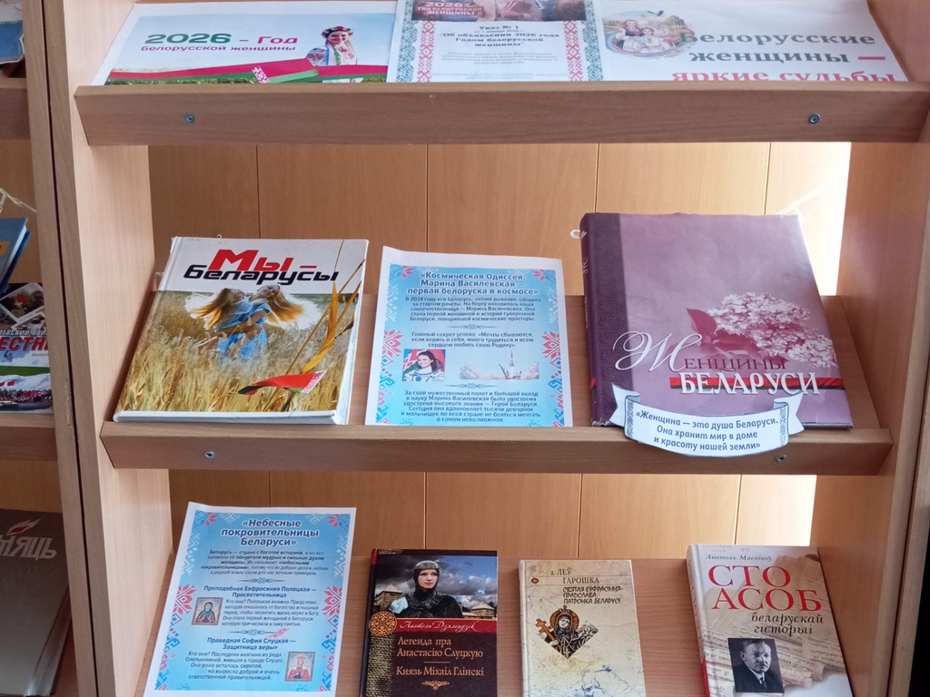 В Заволочицкой сельской библиотеке оформлена выставка-панорама «2026 – Год белорусской женщины», которая знакомит с целями 2026 года, отражает значимую роль белорусских женщин в жизни и разных сферах деятельности.