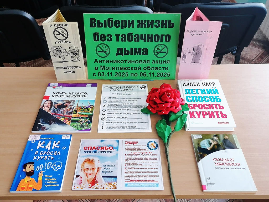 В период с 3 по 21 ноября 2025 года в Республике Беларусь проводится республиканская информационно-образовательная акция «Беларусь против никотина». В Калатичской сельской библиотеке прошел час полезных советов «Будущее здоровье в твоих руках», оформлена выставка «Брось курить – вздохни свободно».