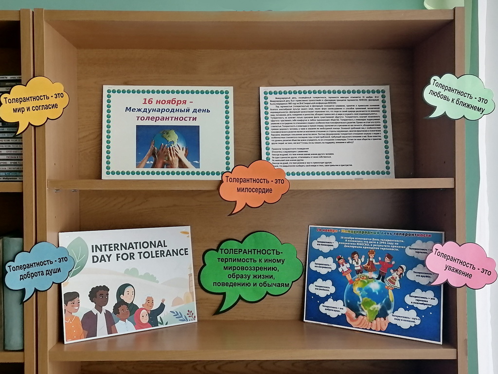 Международный день толерантности ежегодно отмечается 16 ноября с 1995 года по инициативе ЮНЕСКО. К этой дате в Устерховской сельской библиотеке прошла тематическая минутка «Толерантность – территория мира», на которой участники познакомились с понятием толерантности. Задумались о таких ценностях, как доброта, уважение, равенство, мир.