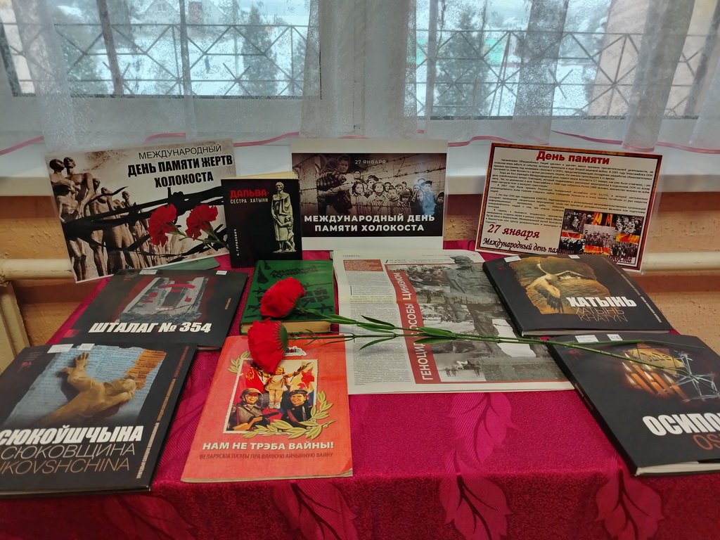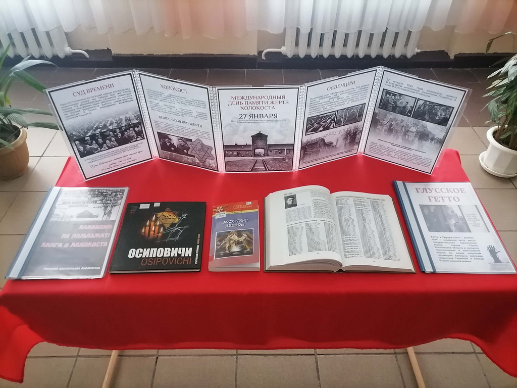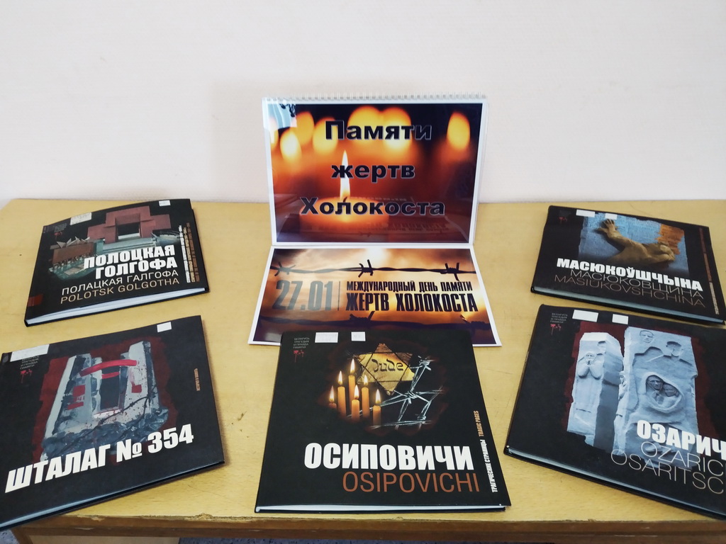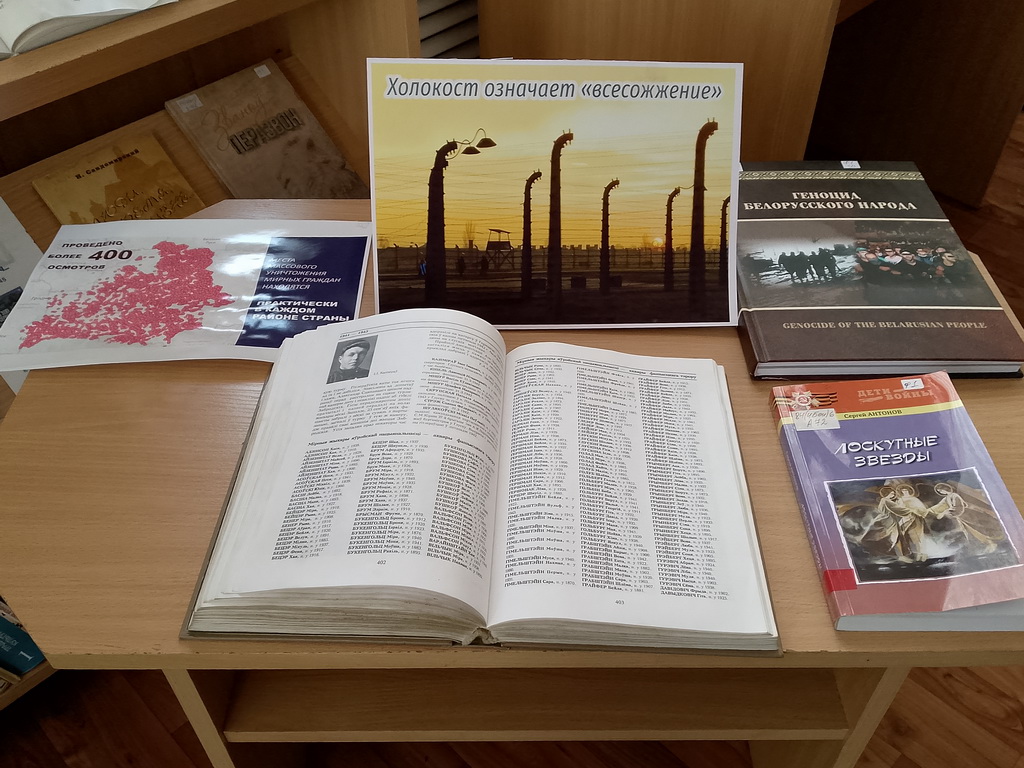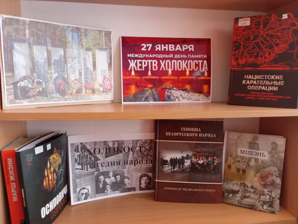 С 21 по 30 января в Берёзовской сельской библиотеке оформлена тематическая выставка «Холокост значит всесожжение». На выставке представлены книги, посвящённые невинным жертвам Великой Отечественной войны: «Геноцид белорусского народа», «Лоскутные звёзды», материалы из книги «Памяць. Глускі раён»: «Мірныя жыхары яўрэйскай нацыянальнасці – ахвяры фашысцкага тэрору».