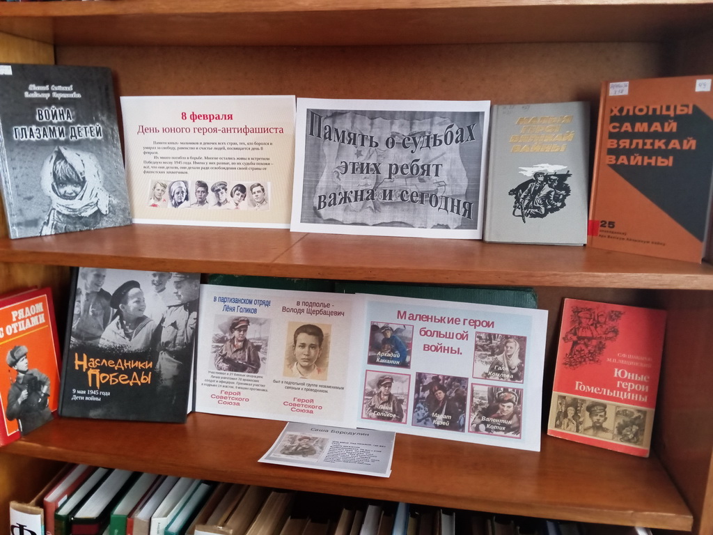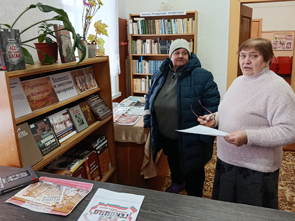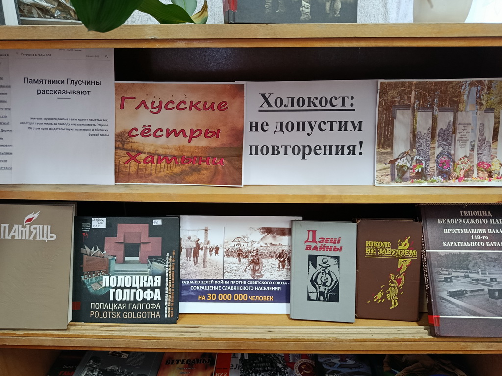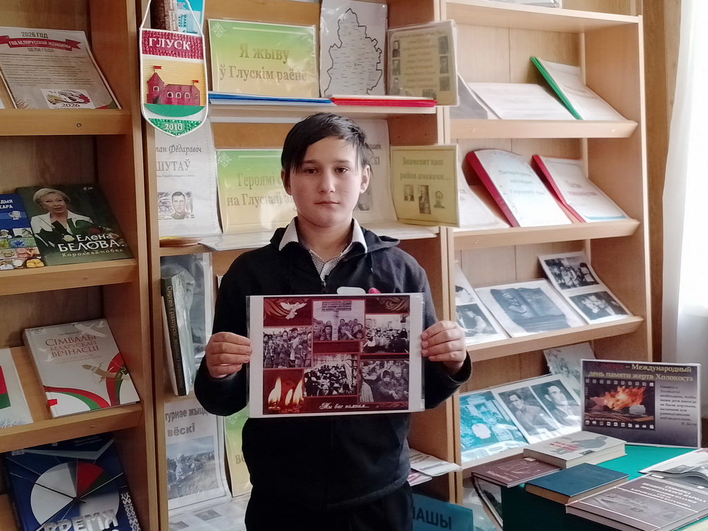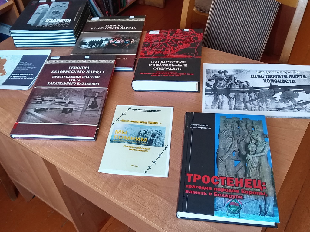 С 21 по 30 января в Берёзовской сельской библиотеке оформлена тематическая выставка «Холокост значит всесожжение». На выставке представлены книги, посвящённые невинным жертвам Великой Отечественной войны: «Геноцид белорусского народа», «Лоскутные звёзды», материалы из книги «Памяць. Глускі раён»: «Мірныя жыхары яўрэйскай нацыянальнасці – ахвяры фашысцкага тэрору».