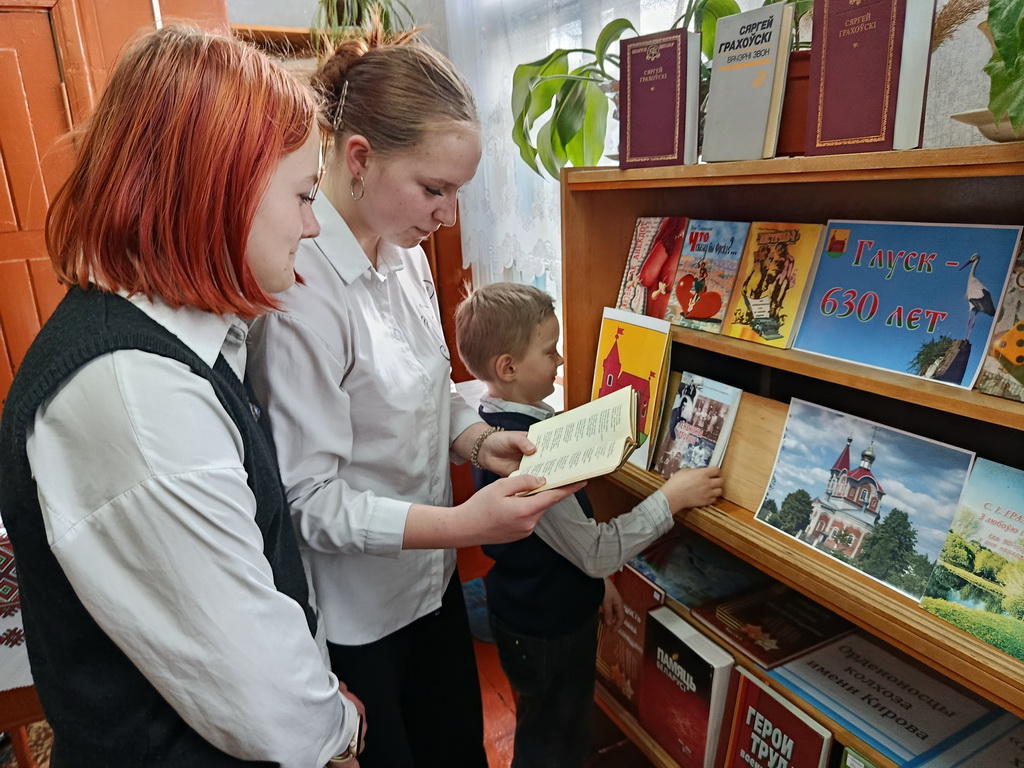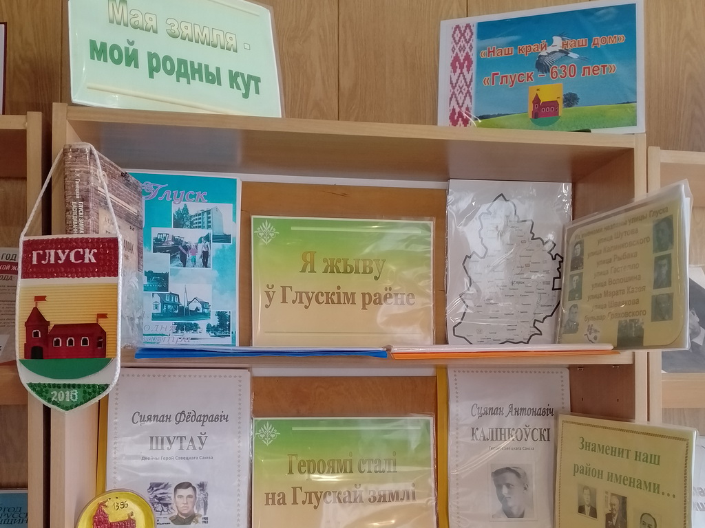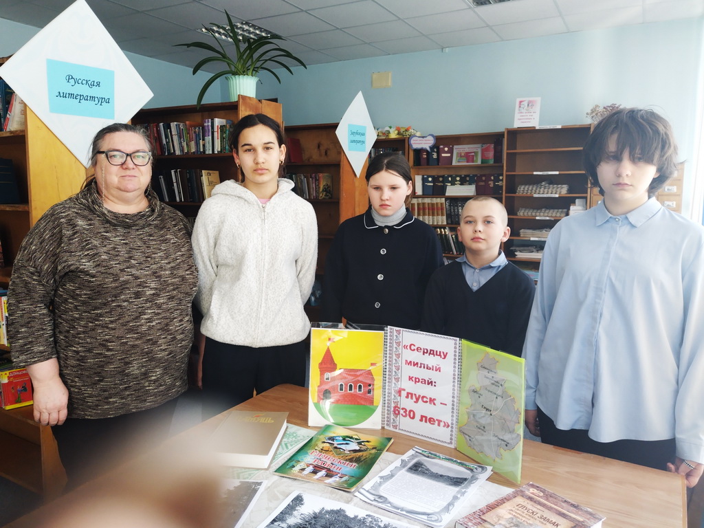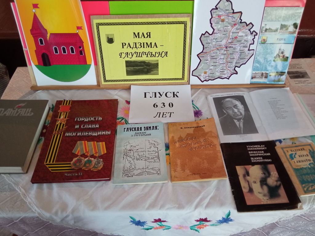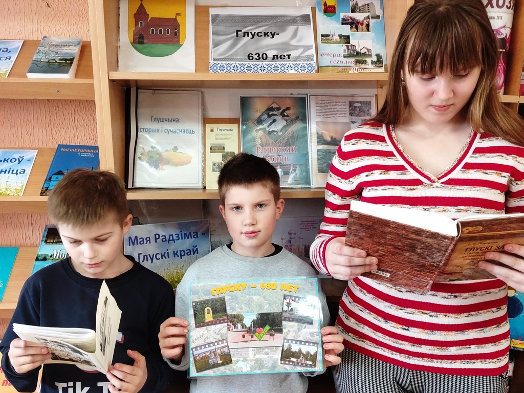 К 630-летию основания Глуска в Туринской сельской библиотеке оформлена книжная выставка и проведён информационный час «Глушчына: гісторыя і сучаснасць». В ходе проведения мероприятия библиотекарь с ребятами беседовали о дате основания Глуска, об истории глусской земли, а также об экономике и экологии нашего края, о писателях и поэтах-земляках.