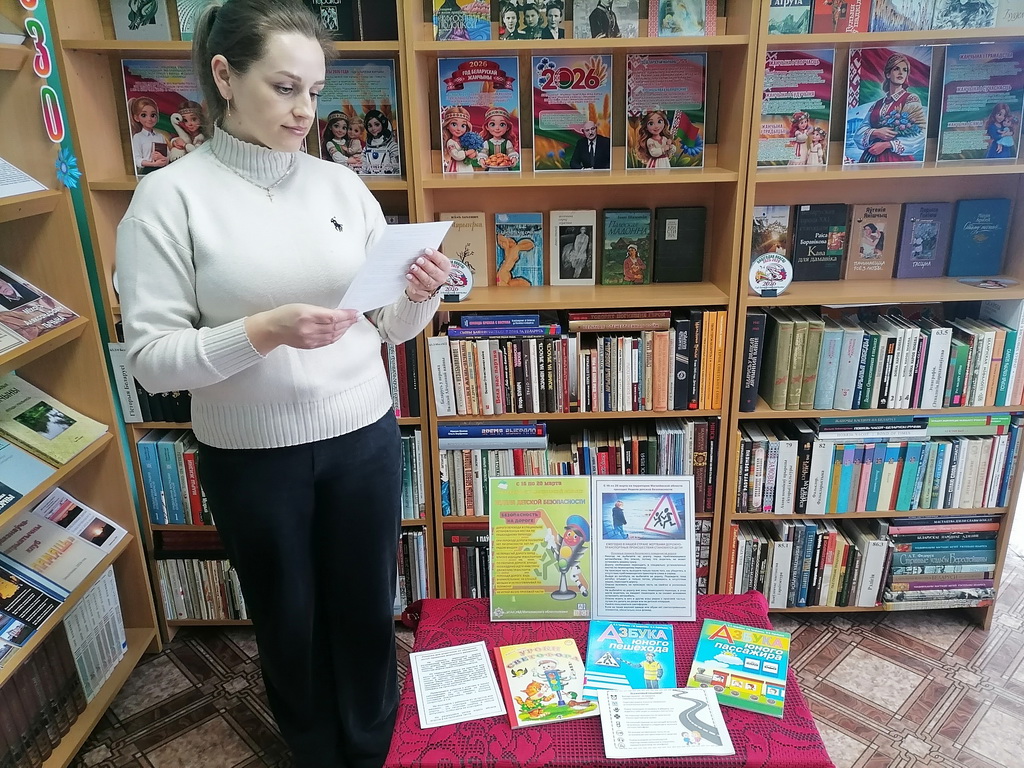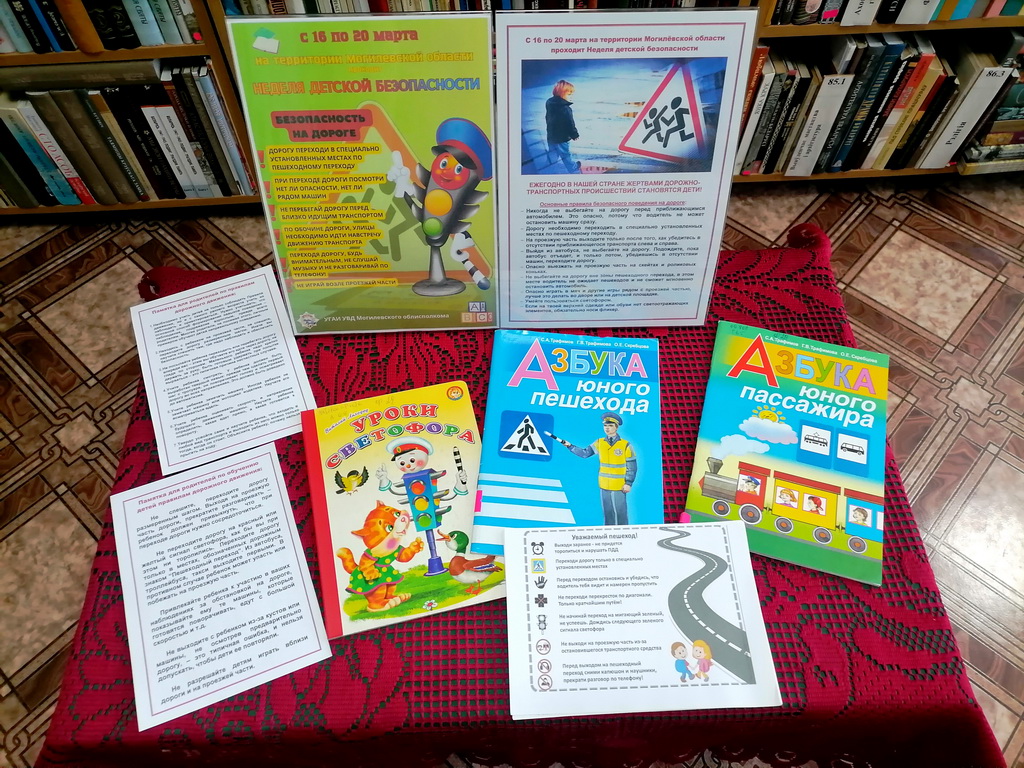 В Могилёвской области с 16 по 20 марта проходит Неделя детской безопасности, в рамках которой в Заволочицкой сельской библиотеке для детей и родителей оформлена тематическая выставка, где размещены основные правила безопасного поведения на дороге, памятка для родителей по обучению детей правилам дорожного движения, а также книжки для детей: «Азбука юного пешехода», «Азбука юного пассажира», «Уроки светофора».