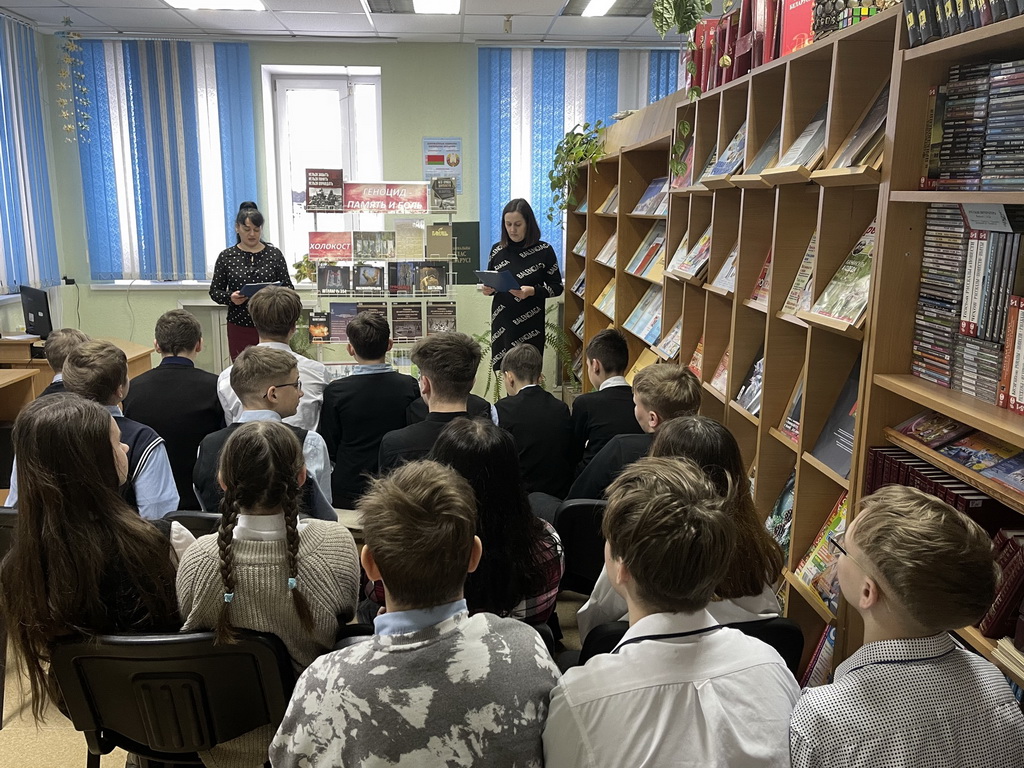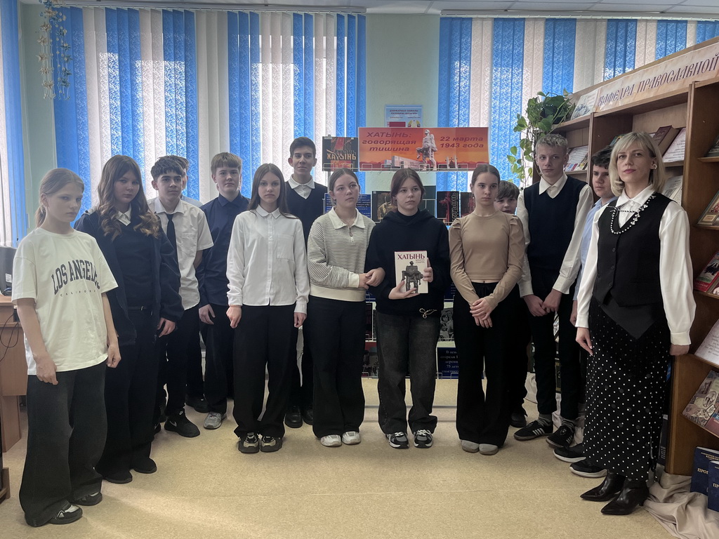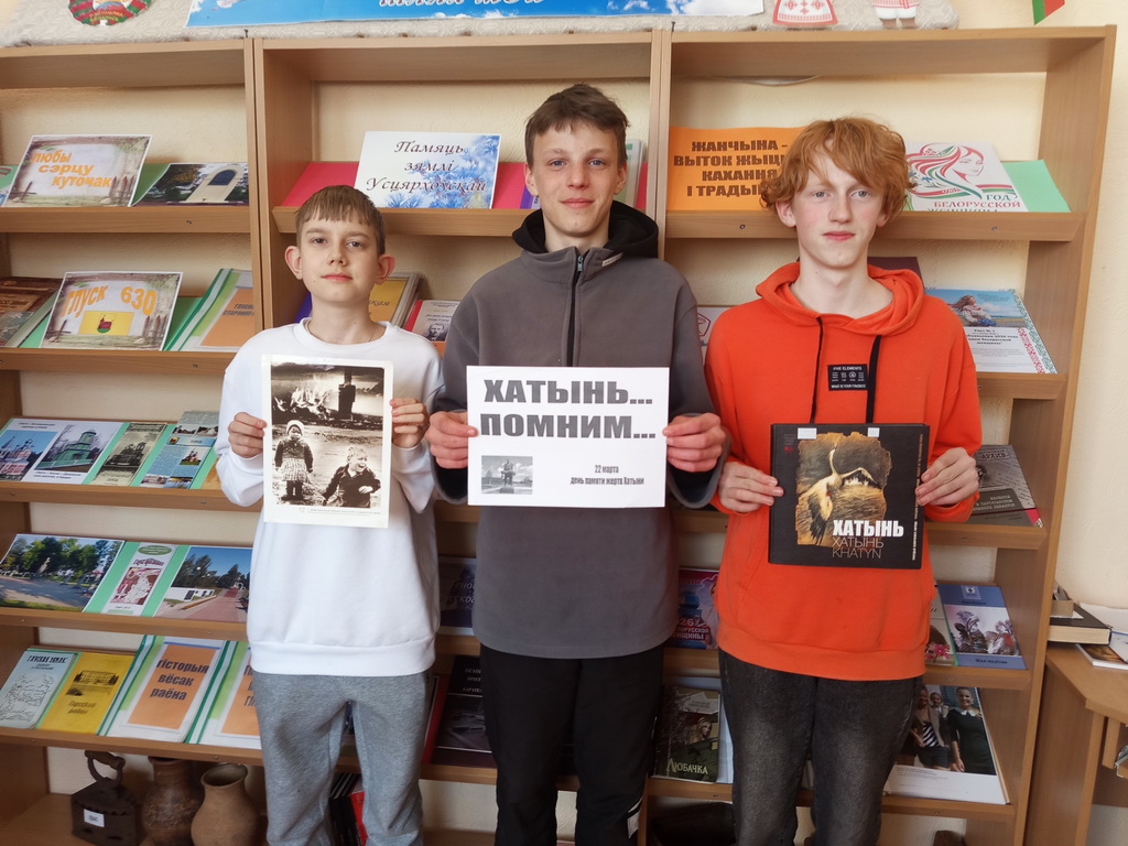 20 марта, в преддверии Дня памяти жертв Хатынской трагедии, в центральной библиотеке прошел час памяти «Хатынь – говорящая тишина» для учащихся 7-го класса СШ №2. Библиотекарь рассказала ребятам о трагических событиях в годы Великой Отечественной войны, а также о том, что сегодня Хатынь знают во всем мире, а само слово «Хатынь» стучит пеплом в сердцах миллионов людей. Просмотр видеоролика о сожженной деревне доказал ребятам, что Хатынь – это безмерная людская скорбь, символ испытаний белорусского народа, истинная народная память.