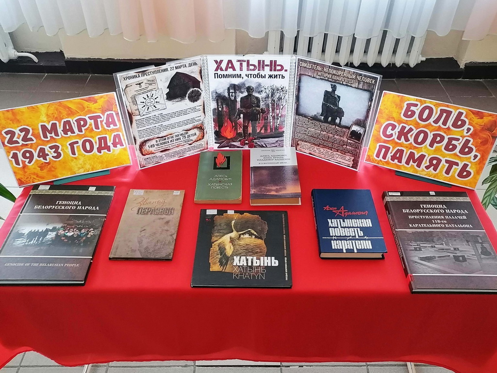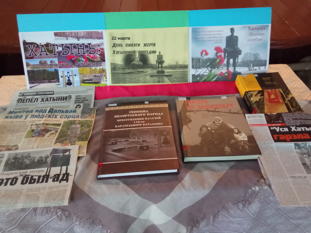 22 марта – День Хатынской трагедии, День памяти жертв Хатыни и сожжённых белорусских деревень. Хатынь – это символ великой трагедии, той, которая на века сохранится в народной памяти и в сердце каждого нового поколения. К этой дате в Туринской сельской библиотеке была оформлена тематическая выставка-скорбь «Хатынь – боль и память белорусской земли». Представленные на выставке книги напомнят о страшных событиях тех времён, познакомят с воспоминаниями свидетелей той трагедии.
