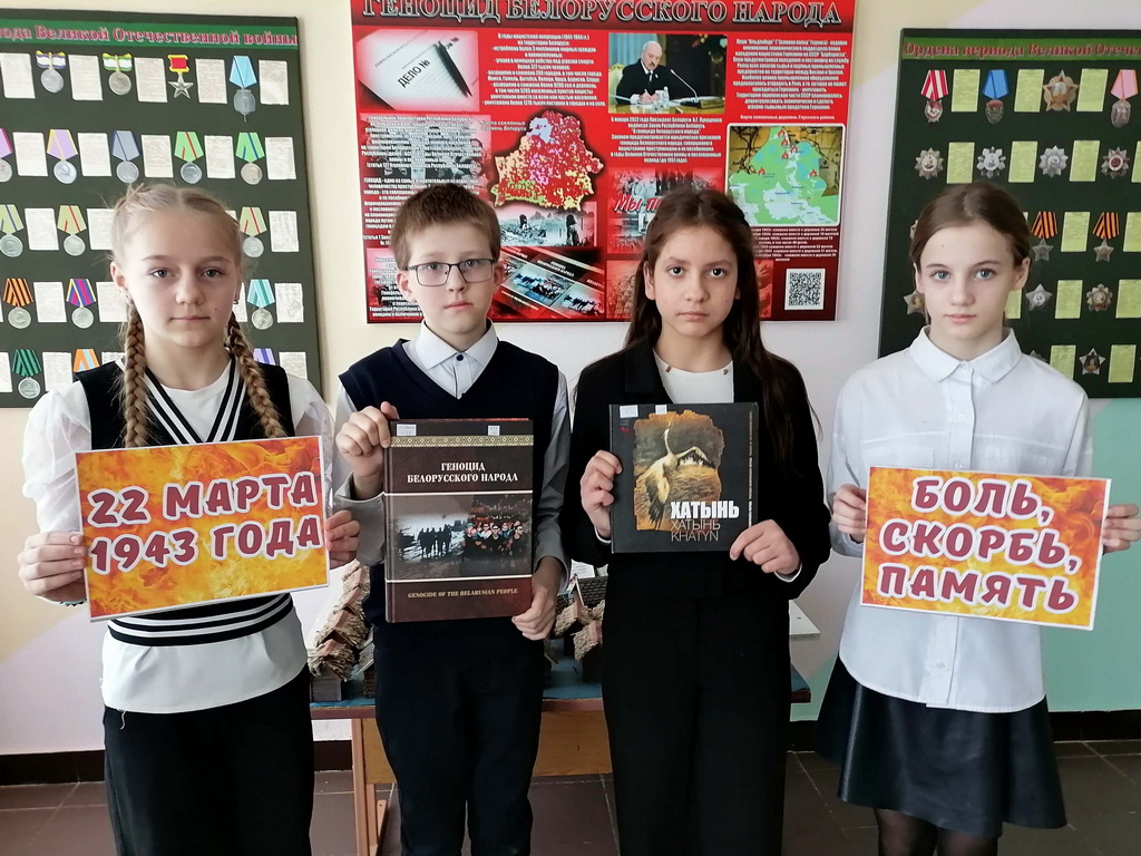 Хатынь – это наша боль, наша неутолимая скорбь, наша всеобщая беда и вечная память. 22 марта исполняется 83 года ужасной трагедии Хатыни. Эта дата напоминает о многочисленных бесчеловечных преступлениях геноцида, совершённых на территории Беларуси в годы Великой Отечественной войны. В преддверии памятной даты библиотекарь Заволочицкой сельской библиотеки для школьников и воспитанников детского сада оформила выставку и провела час-реквием «Хатынь: живи и помни», в ходе которого рассказала о произошедшей трагедии, отметила то, что очень важно сохранять память о тех событиях и защищать историческую правду.
