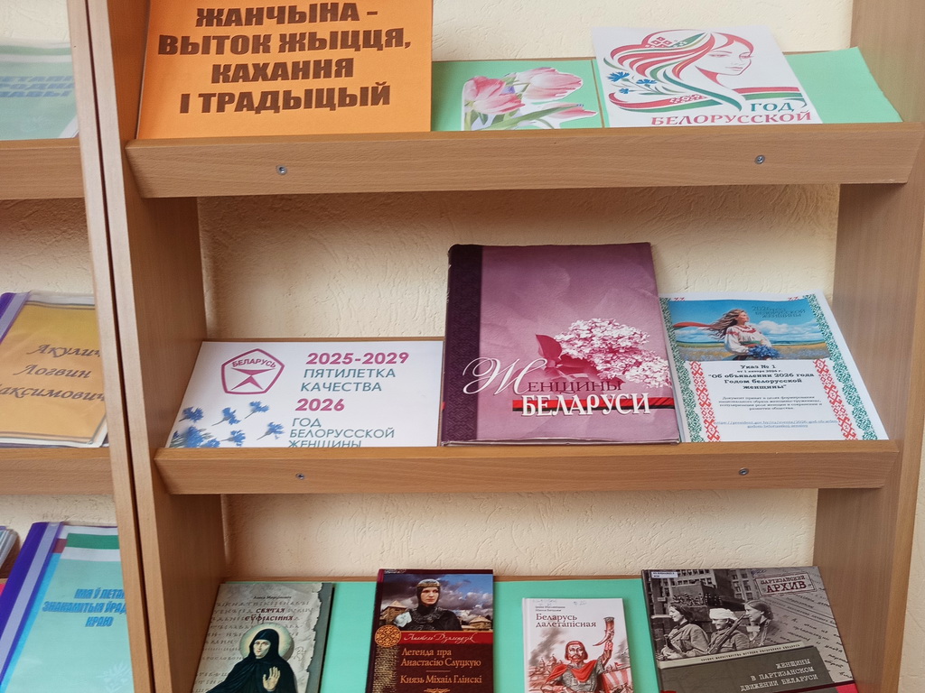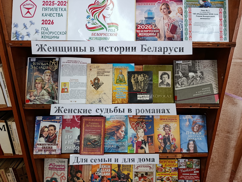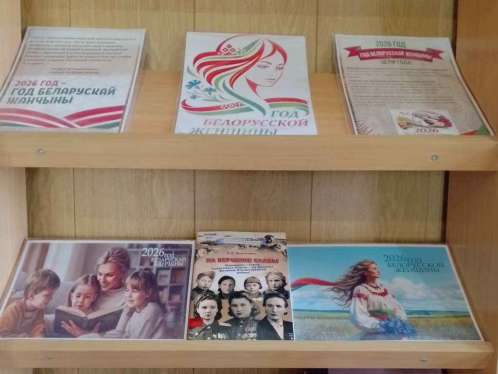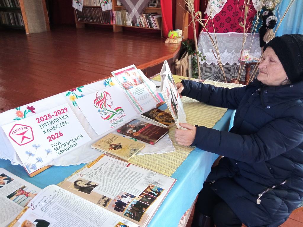 В Заволочицкой сельской библиотеке оформлена выставка-панорама «2026 – Год белорусской женщины», которая знакомит с целями 2026 года, отражает значимую роль белорусских женщин в жизни и разных сферах деятельности.