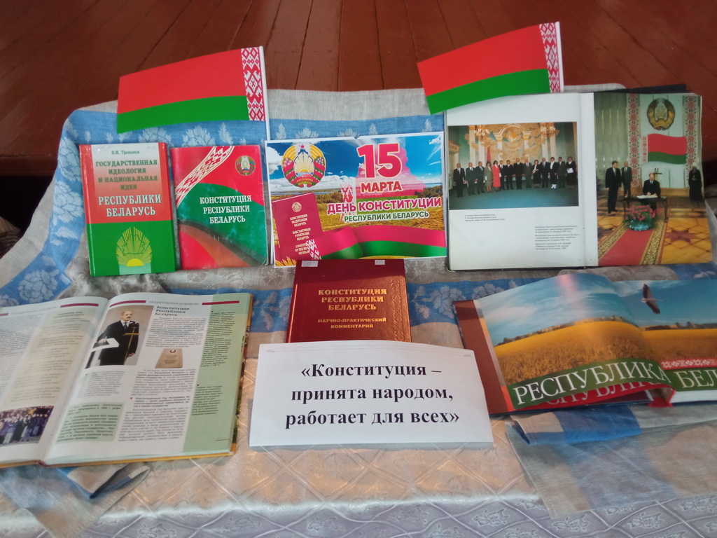 В Балашевичской сельской библиотеке-клубе оформлена информационная выставка «Конституция – принята народом, работает для всех». На выставке были представлены различные издания Конституции Республики Беларусь, которые помогают читателям сформировать представление об основном законе государства как о документе, обладающем высшей юридической силой.