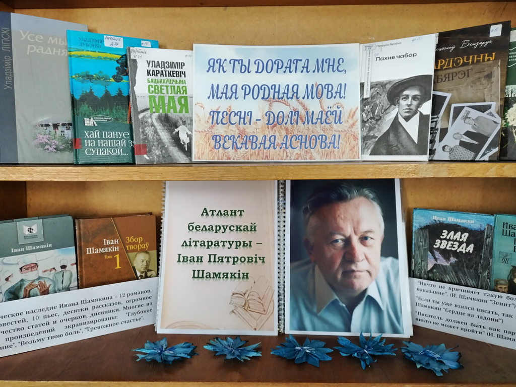 Iвaн Пятpoвiч Шaмякiн – нapoдны пicьмeннiк Бeлapyci, Гepoй Caцыялicтычнaй Пpaцы, aкaдэмiк HAH Бeлapyci. Нapaдзiўcя 30 cтyдзeня 1921 гoдa ў вёcцы Kapмa Дoбpyшcкaгa paёнa Гoмeльcкaй вoблacцi ў cялянcкaй cям'i. Сёлета спаўняецца 105 год з дня нараджэння Івана Шамякіна, аўтара пенталогіі «Трывожнае шчасце», раманаў «Сэрца на далоні», «Атланты і карыятыды», «Вазьму твой боль», аповесці «Гандлярка і паэт», якія чыталі мільёны чытачоў. З гэтай нагоды ў Каткаўскай сельскай бібліятэцы аформлена кніжная паліца «Атлант беларускай літаратуры – Іван Пятровіч Шамякін». Кнігі Івана Шамякіна – аналіз чалавечых характараў, мастацкі злепак жыцця і эпохі.