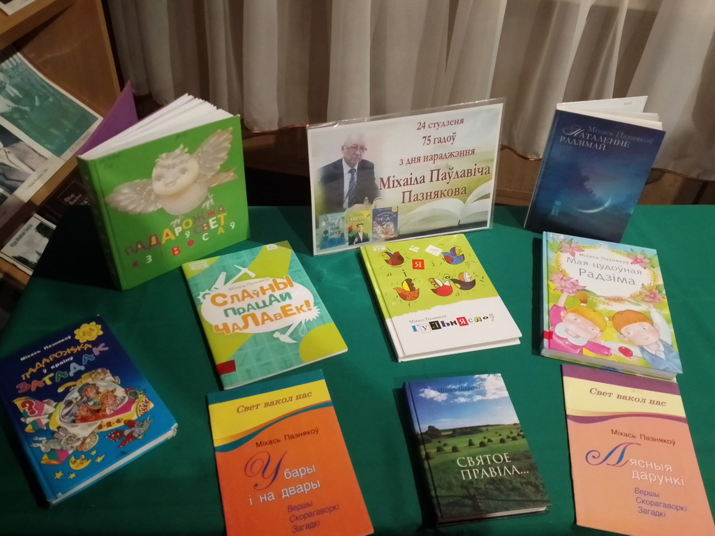 24 студзеня адзначае свой 75-гадовы юбілей вядомы беларускі пісьменнік Міхась Пазнякоў. Міхаіл Паўлавіч плённа працуе на ніве дзіцячай літаратуры, крытыкі, публіцыстыкі, перакладаў. Яго творы ўключаны ў школьныя падручнікі, перакладзены на 22 мовы свету. Міхась Пазнякоў – лаўрэат 12 літаратурных прэмій, у тым ліку прэміі імя П.Броўкі, Я.Маўра, В.Віткі, Федэрацыі прафсаюзаў Беларусі, Міжнароднай прэміі ў галіне паэзіі. За літаратурную дзейнасць узнагароджаны 13 медалямі, у тым ліку медалём Францыска Скарыны. З нагоды юбілею майстра Клятнянская сельская бібліятэка запрашае наведаць кніжную выставу «З любоўю да роднага краю».