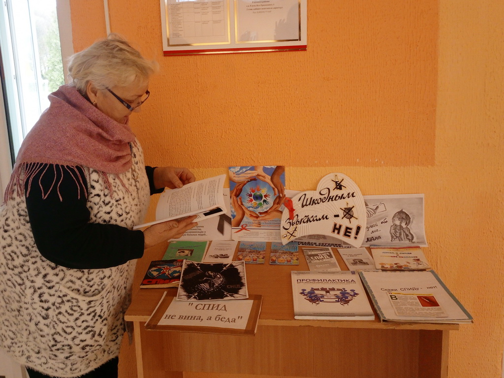 В рамках Всемирного дня борьбы со СПИДом библиотекарь Заволочицкой сельской библиотеки среди местного населения провела акцию «Профилактика ВИЧ-инфекции», в ходе которой вручала гражданам буклеты, содержащие информацию о ВИЧ/СПИДе, рекомендации, как не стать жертвой коварной болезни.