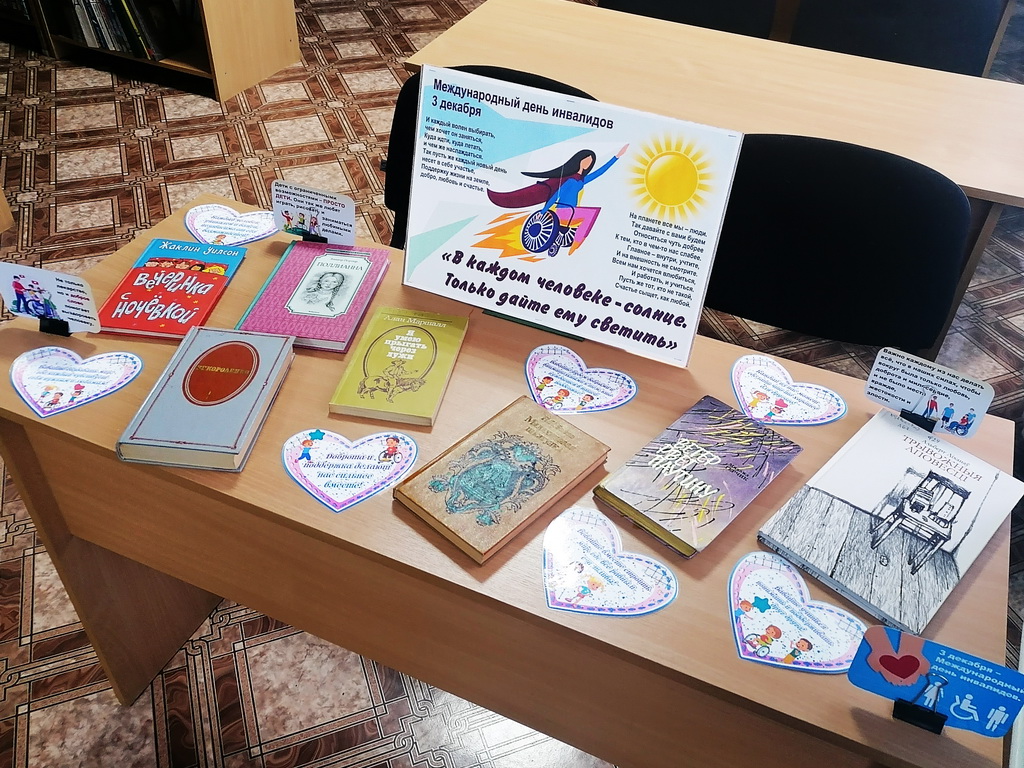 Третье декабря – особый день, потому что во всём мире отмечается Международный день инвалидов. Эта дата призвана напомнить всем о трудностях, с которыми сталкиваются люди с ограниченными возможностями здоровья, призвать всех людей быть восприимчивыми и отзывчивыми, эта дата объединяет всех, кто не равнодушен к судьбам нуждающихся в помощи. К данному дню в Заволочицкой сельской библиотеке для детей и взрослых оформлена книжно-иллюстративная выставка «В каждом человеке – солнце. Только дайте ему светить». Её цель – показать мир людей с инвалидностью, их жизнь, трудности, таланты, способствовать воспитанию ценностного отношения к личности человека, способности видеть хорошее в каждом.
